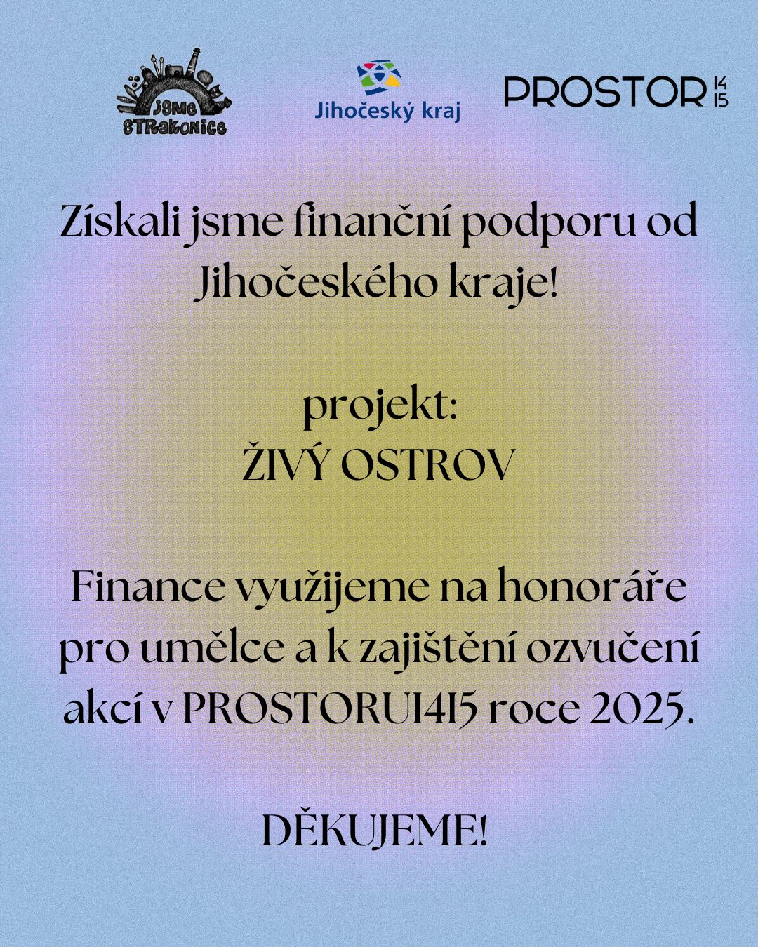 V rámci projektu ŽIVÝ OSTROV jsem získali podporu od Jihočeského Kraje.